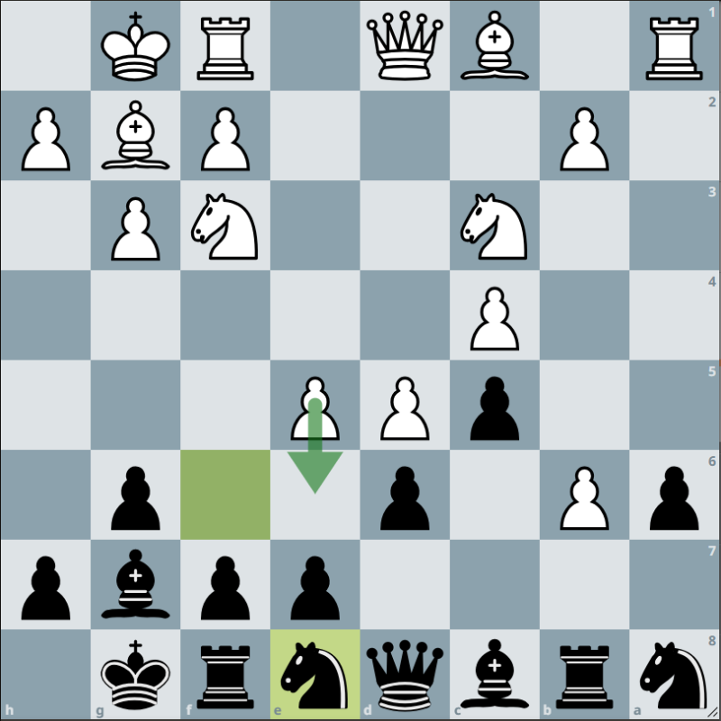 Alan won zijn partij ook doordat hij onverwachts de zwarte koning naar het centrum kon ‘offeren’. Hij vertelde me dat hij deze wending van te voren niet gezien had, maar deze bleek wel dodelijk. De zwarte koning werd overmeesterd en Alan kon weer een punt bijschrijven. Daarmee gaat zijn TPR richting de 2400! Ik ben altijd onder de indruk met het gemak waarop Alan zijn partijen wint. Daar gaan we nog veel plezier aan beleven!