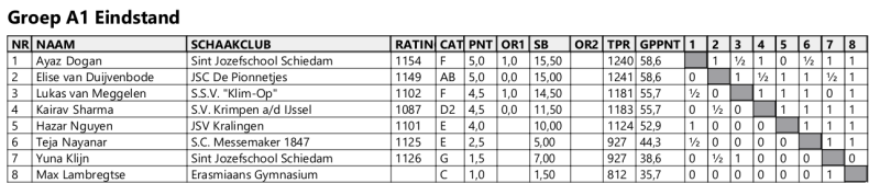 Kairav Sharma en Josephine Hoogendoorn hebben meegedaan aan het Open Capels Jeugdkampioenschap op dinsdag 30 december. In totaal namen 134 kinderen deel, verdeeld over 9 achtkampen, 7 zeskampen en 5 vierkampen.